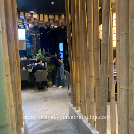 대나무 길과 천장의 목제 장식으로 분위기는 좋았다.