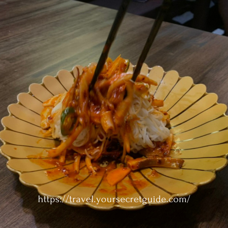 2. 스끼다시 중 제일로 맛있었던 한치 무침의 소면이 미지근하니,