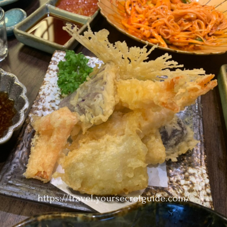 ·새우야채튀김·전복찜·초밥/롤·우동면
