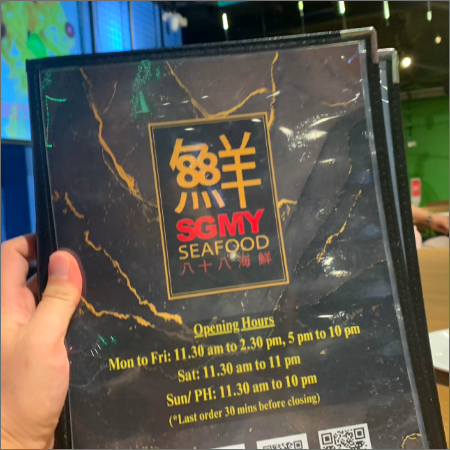 SGMY SEAFOOD 메뉴판 살짝보기