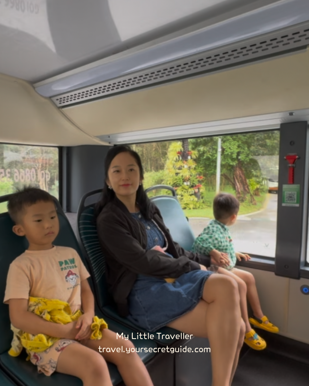 잠시 후 도착한 셔틀버스에 올라타자, 아이들도 두근거리는 표정으로 창밖을 내다보며 "언제 도착해?"를 연발하네요.