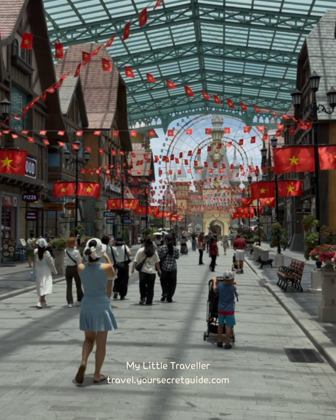 조식 후 무료 셔틀버스를 타고 빈원더스 테마파크로 향했습니다. 규모가 워낙 크다 보니 유모차를 대여해 아이들이 지칠 때마다 편히 쉴 수 있어 훨씬 수월했습니다. (디포짓 50만동 및 사용료 20만동)