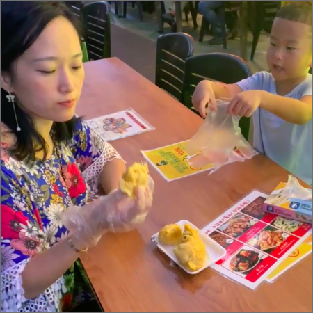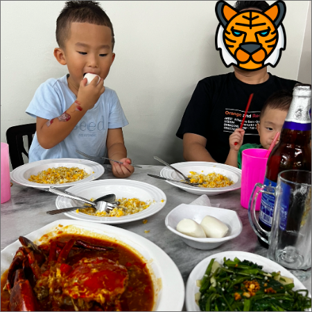 여기야말로 먹거리 투성이인 잘란 알로 야시장 거리가 되겠습니다. 이름은 기억이 안 나지만 중간쯤 가다 보면 바로 여기라고 알 수 있을 정도로, 한국 사람들이 자주 간다는 식당에 가서 (진짜 90프로 한국 사람들임...) 시원한 맥주 한 잔과 칠리크랩 그리고 아이들이 좋아하는 볶음밥을 시켜서 심플하게 저녁 식사를 했습니다. 먹는 거나, 마사지, 두리안 말고는 그다지 볼 거는 없습니다. 그냥 분위기와 저녁을 먹으러 오기는 여기가 최고입니다. 로파파와 코마마는 두리안을 즐겨 먹어서 야시장 입구에 커다랗게 음식점 간판아래 두리안 가게에서 맛있게 냠냠냠 했습니다.